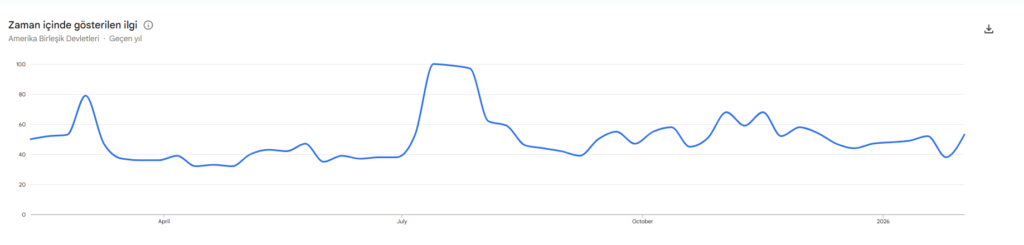 Google Trends data shows that global search interest has declined. In the US, interest peaked at 100 in July, fell below 37 in January, and partially recovered to 56 in early February. The yearly low of 32 was recorded during the April 2025 market crash, driven by US President Donald Trump’s tariff policies.
