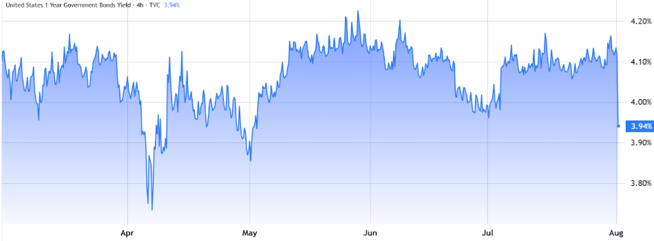 Investors have shifted to cash and short-term Treasury bonds due to a weakening labor market. Demand for 1-year U.S. Treasury notes reached a three-month high, driven by revised employment data and an increase in July’s unemployment rate to 4.2%.