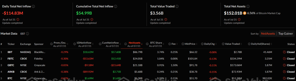 On July 31, spot Bitcoin ETFs saw a net outflow of $115 million, ending a five-day streak of net inflows. This further impacted investor sentiment. Meanwhile, Strategy (MSTR) announced a $4.2 billion stock offering on Thursday, which could help prevent large-scale Bitcoin sales and stabilize the derivatives market.