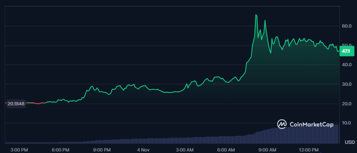 While the overall cryptocurrency market has been trending downward, Decred (DCR) has defied expectations by soaring 143% in just 24 hours. The altcoin briefly touched the $65 mark before retreating to around $47 at press time. This sharp rally has caught the attention of investors — but what’s driving the sudden momentum behind DCR?
