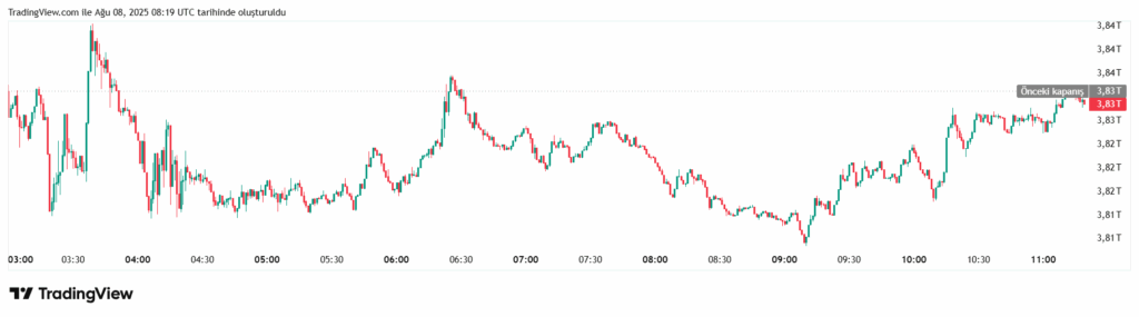 The total value of the cryptocurrency market increased by $104 billion in the last 24 hours, reaching $3.81 trillion. With this rise, the previously resistant $3.73 trillion level has now become a strong support. Bitcoin (BTC) surged past the $115,000 mark to $116,584, driven by a 20% increase in trading volume. This indicates strong buying pressure in the market.