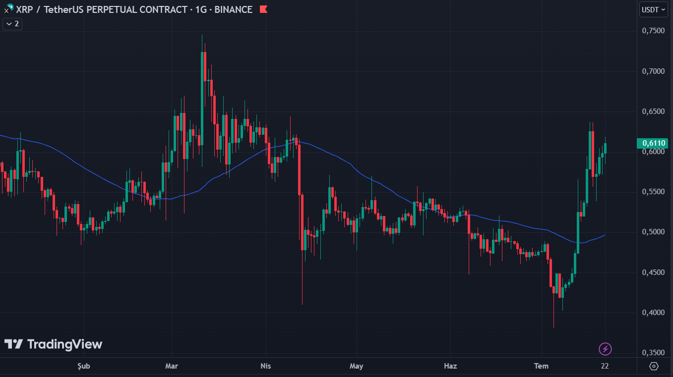 The price of XRP, which has made significant progress in its ongoing case with the SEC, rose to $0.61. According to TradingView data, it continues the day with an increase of over 2 percent.